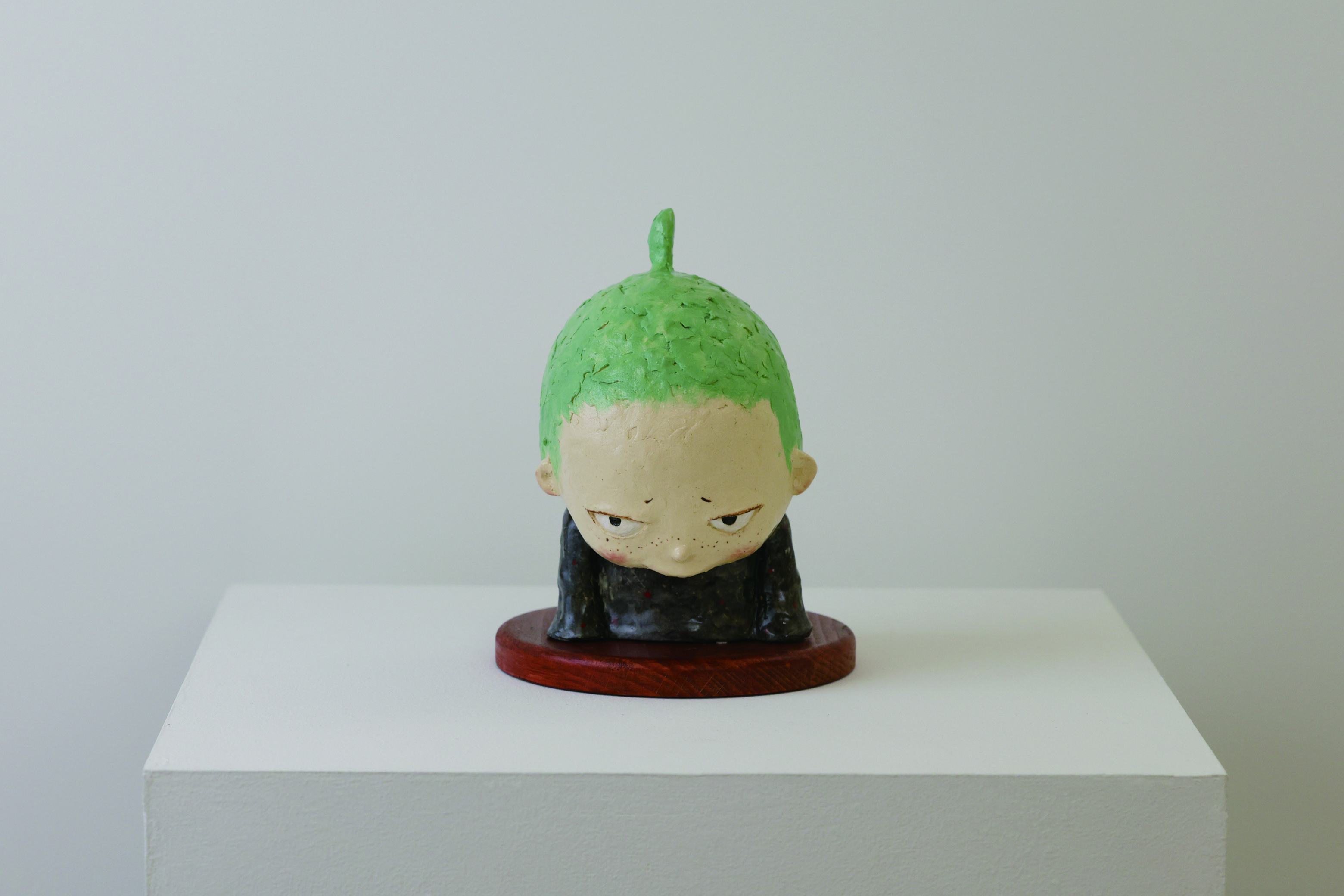 この子(作品)達が着ている全身タイツのようなフードの服は、自分と他者との社会的接触を避ける心の壁を表している。