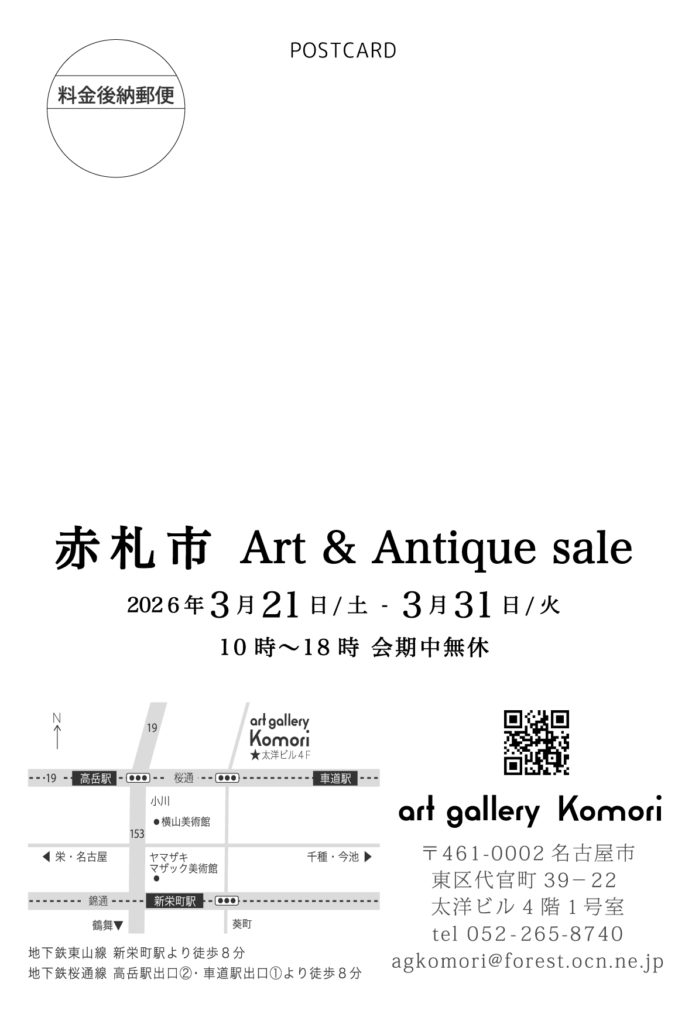 この度、当画廊におきまして、陶磁器・絵画・茶道具・掘り出し物などをお値打ち価格にてご奉仕する恒例の「赤札市」を開催する運びとなりました。春の訪れを待つこの時季、どうぞ皆様お誘い合わせのうえ、ご来賜りますよう心よりお待ち申し上げております。